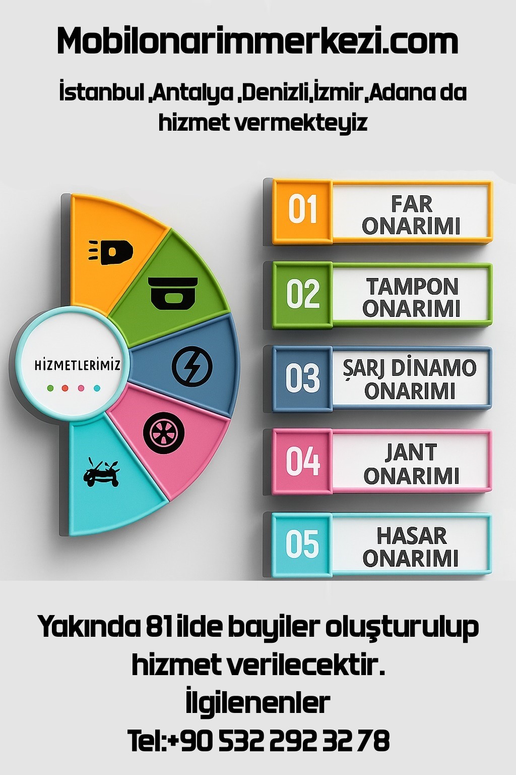 Mobil Onarım Merkezi olarak, araçlarınızın güvenliği ve performansı konusunda sizlere en üst düzeyde hizmet sunmayı amaçlıyoruz. Deneyimli ve uzman ekibimizle, araçlarınızın her türlü ihtiyacını karşılamak için buradayız.